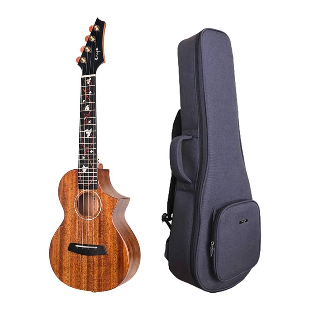 The Enya EUT-M6 tenor ukulele stands out as a professional-grade instrument with its all-solid mahogany construction, delivering rich resonance that improves over time. Its abalone inlay and polished gloss finish give it a premium aesthetic that appeals to discerning players.