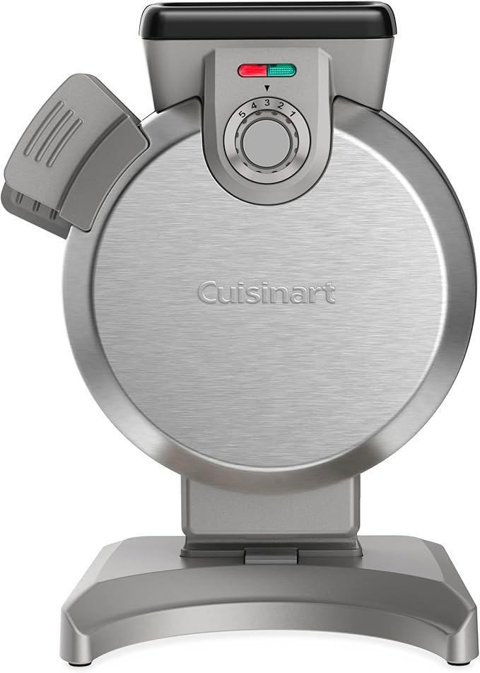 The Cuisinart Vertical Belgian Waffle Maker delivers reliable performance through a straightforward design that prioritizes functionality and ease of use. This classic waffle maker produces 8-inch round Belgian-style waffles, offering generous portions perfect for hearty breakfast appetites or family sharing.